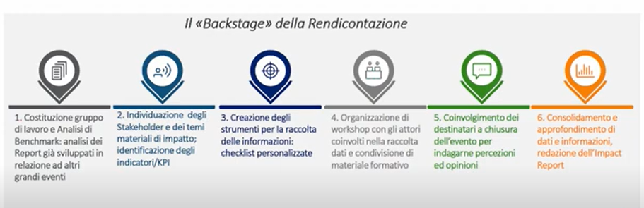 Un lavoro, quello della definizione del proprio quadro di riferimento e della misurazione dell’impatto complesso e multiforme che ha previsto diversi step (l’immagine a seguire mostra le attività che hanno portato al risultato finale).
