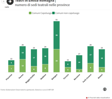 Le seguenti datavisualization si focalizzano sulle sedi teatrali presenti in regione: vengono mostrati quanti teatri sono presenti in ogni provincia nonché la loro natura giuridica. ... leggi di più